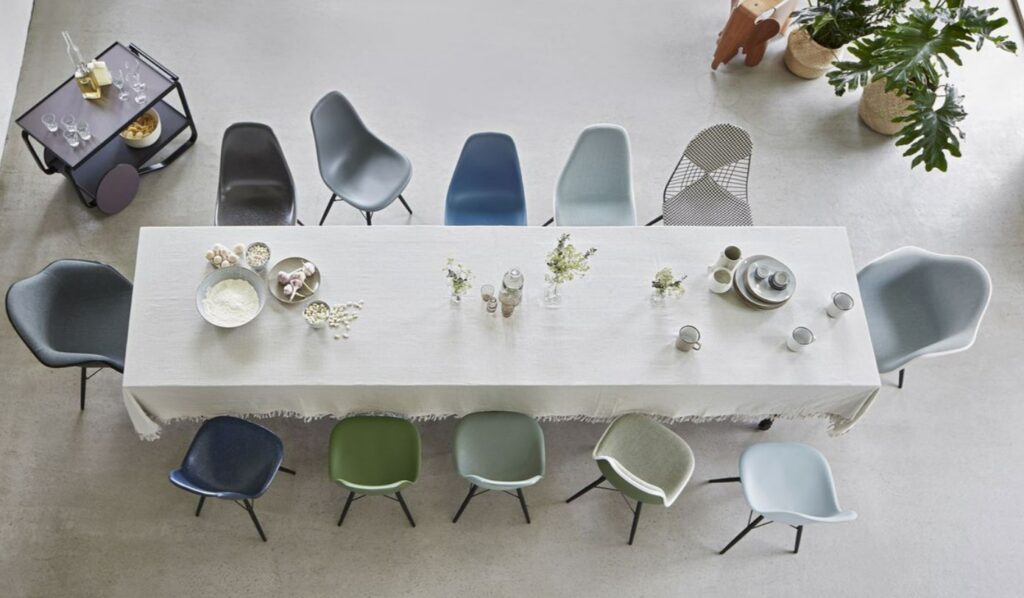 Por aquel entonces, los Eames trabajaron diseñando sillas para el empresario de muebles líder, Herman Miller. Innovaron con materiales como la fibra de vidrio, el plástico reforzado, la madera contrachapada y el aluminio, creando piezas que eran asequibles, duraderas y bellamente diseñadas.